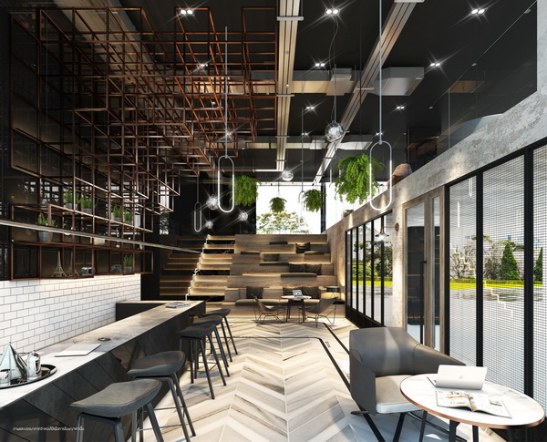 ตกแต่งด้วยกระจกบานใหญ่มองลงมาเห็นวิวสระว่ายน้ำเช่นกัน