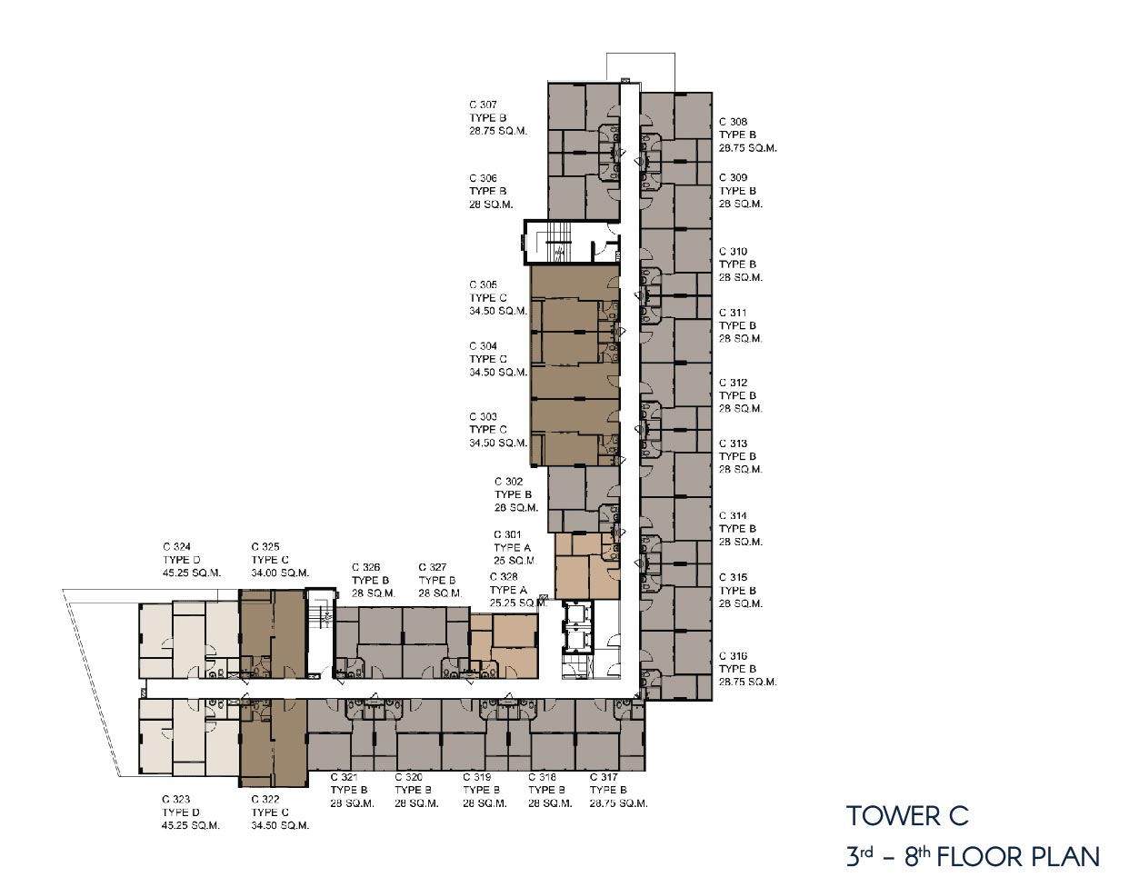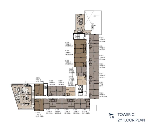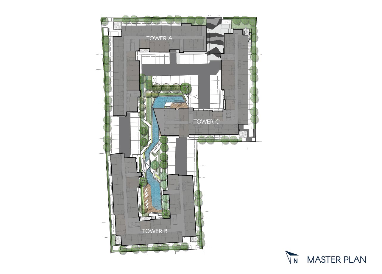 ภาพ Master Plan ภาพรวมบริเวณชั้น 1 ของทั้ง 3 อาคาร (A,B,C) ส่วนกลางและสิ่งอำนวยความสะดวก