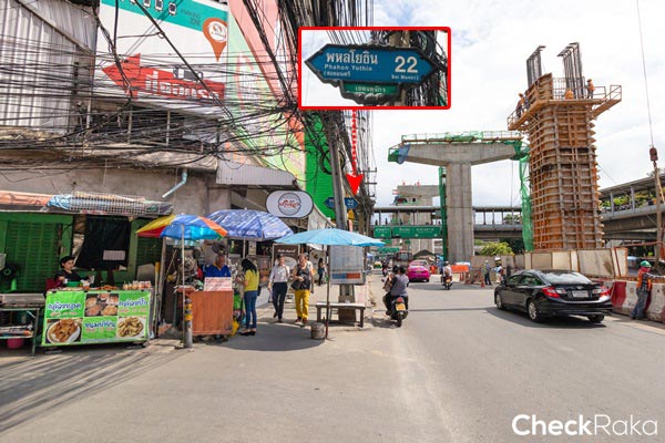 จากสะพานลอยเดินมาอีกนิดจะเจอซอยพหลโยธิน 22