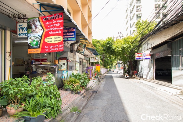 บริเวณปากซอยค่อนข้างคึกคักมีร้านอาหารริมทางให้เลือกทานหลายร้าน เรียกว่าอยู่แถวนี้ไม่มีอดแน่นอน