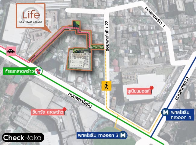 ซึ่งทางออกนี้จะห่างจากโครงการ (ประตูซอยพหลโยธิน 22) ประมาณ 390 เมตร