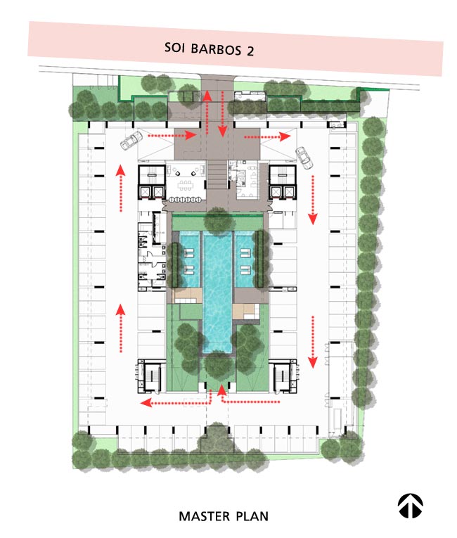 แผนที่แสดงสภาพแวดล้อมรอบๆ โครงการในระยะใกล้ ทิศเหนือ : ด้านหน้าโครงการติดถนนซอยบาร์โบส 2 ฝั่งตรงข้ามเป็นอาคารพักอาศัยความสูง 8 ชั้น และร้านอาหาร ทิศตะวันออก : โซนด้านหน้าจะติดกับบ้านพักอาศัยความสูง 2 ชั้น ส่วนโซนด้านหลังจะติดกับอาคารพักอาศัยความสูงประมาณ 8 ชั้น ทิศใต้ : ติดกับอาคารจอดรถของตึกออฟฟิศความสูงประมาณ 4-5 ชั้น ฝั่งทิศตะวันตก : ติดกับอาคารเก็บเอกสารความสูง 4-5 ชั้น ทิศเหนือ : ฝั่งด้านหน้าโครงการเป็นอาคารพักอาศัยความสูง 8 ชั้น