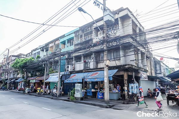 ตรงข้าม 7-Eleven มี้ร้านขายอาหารหลายร้าน และยังมีตลาดเล็กอยู่บริเวณนี้ด้วย