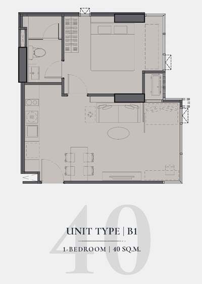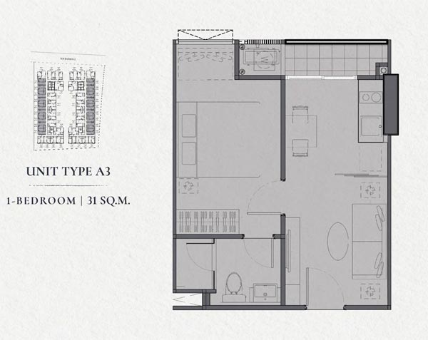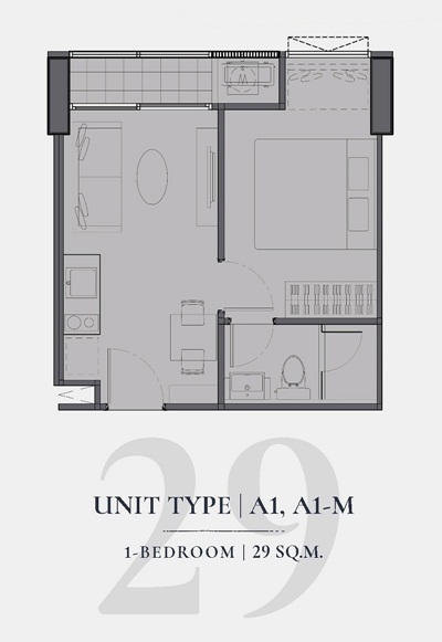 1) ห้องแบบ 1 Bedroom พื้นที่ใช้สอยขนาด 31 ตร.ม.