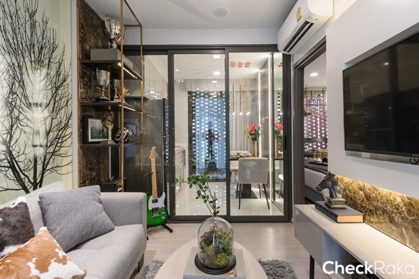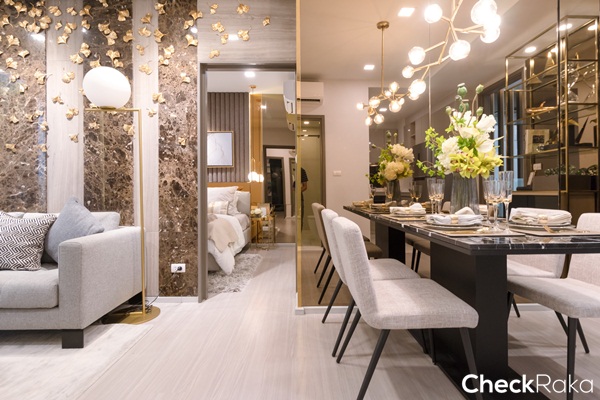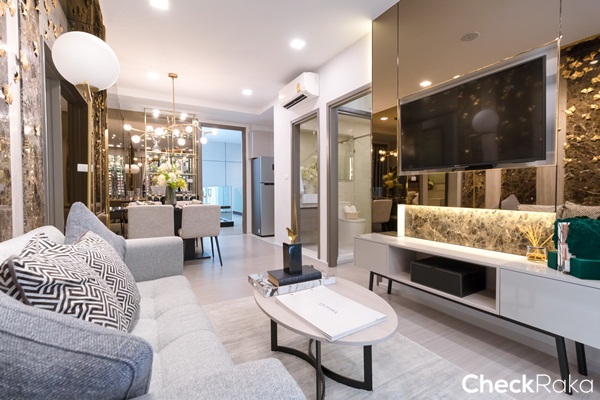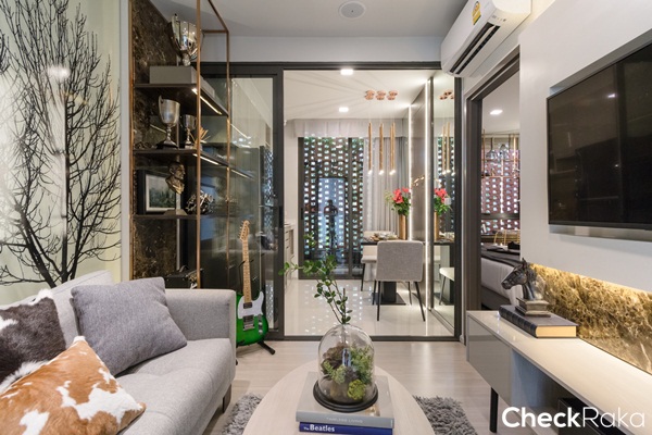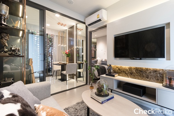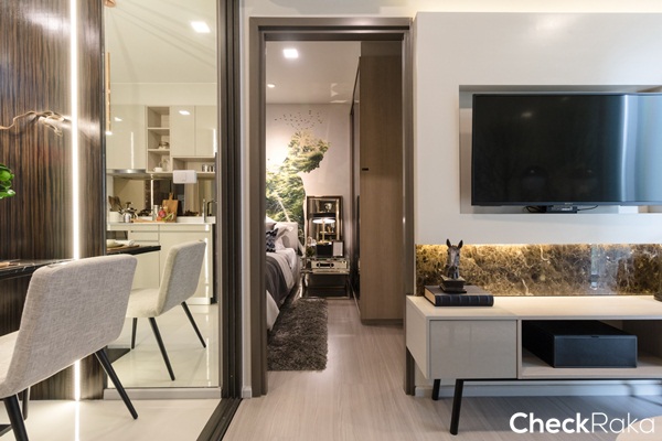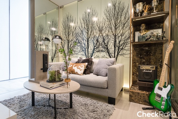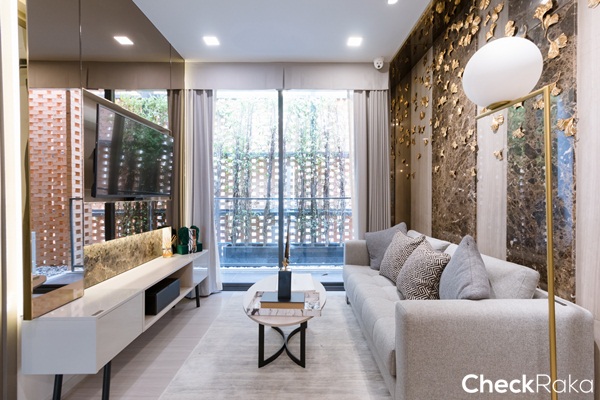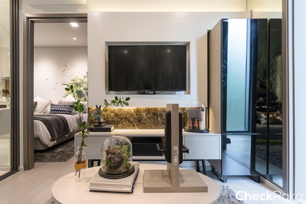 ที่สำนักงานขายจัดห้องตัวอย่างมาให้ชมด้วยกัน 2 แบบ เป็นห้องแบบ 1 Bedroom ขนาด 31.00 ตร.ม. และ 2 Bedroom ขนาด 55 ตร.ม. ตามไปชมกันทีละห้องเลยค่ะ เริ่มจากห้องแรก