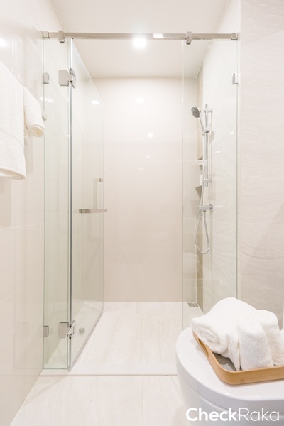 สุขภัณฑ์ในห้องน้ำของ Kasch ฟังก์ชันการใช้งานครบเหมือนห้องที่แล้ว แต่ห้องนี้จะมีความพิเศษกว่าห้องอื่นตรงที่เดินระบบสำหรับติดตั้งเครื่องทำน้ำร้อนมาให้ พร้อมได้ Rain Shower ทรงสี่เหลี่ยมขนาดใหญ่