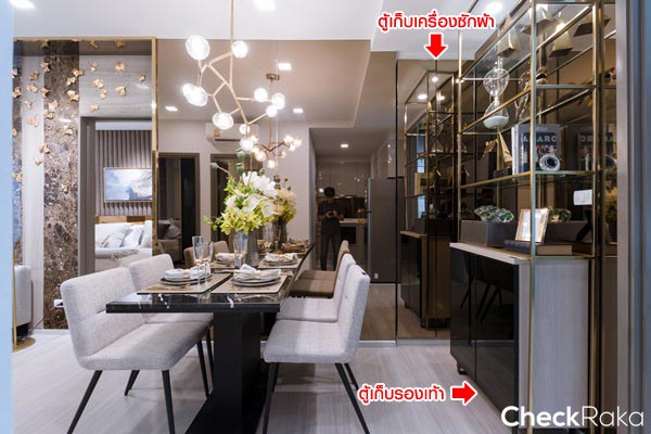 ตู้เก็บเครื่องซักผ้าอยู่ใกล้กับโต๊ะทานอาหาร ถ้าดูผ่านๆ นี้แทบไม่รู้เลย