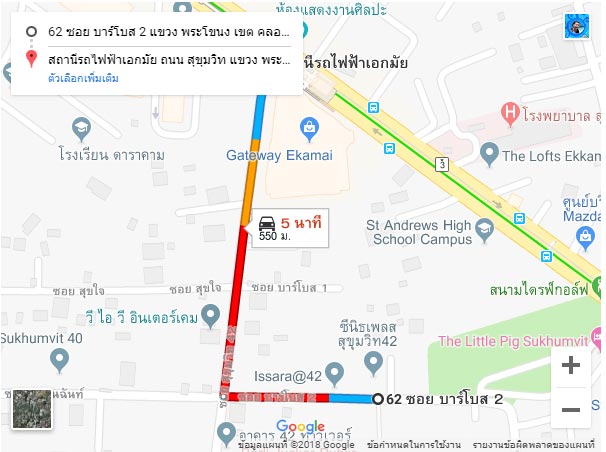 แผนที่แสดงเส้นทางการเดินจาก BTS เอกมัย ไปยังที่ตั้งโครงการ เริ่มจากรถไฟฟ้า BTS สถานีเอกมัย