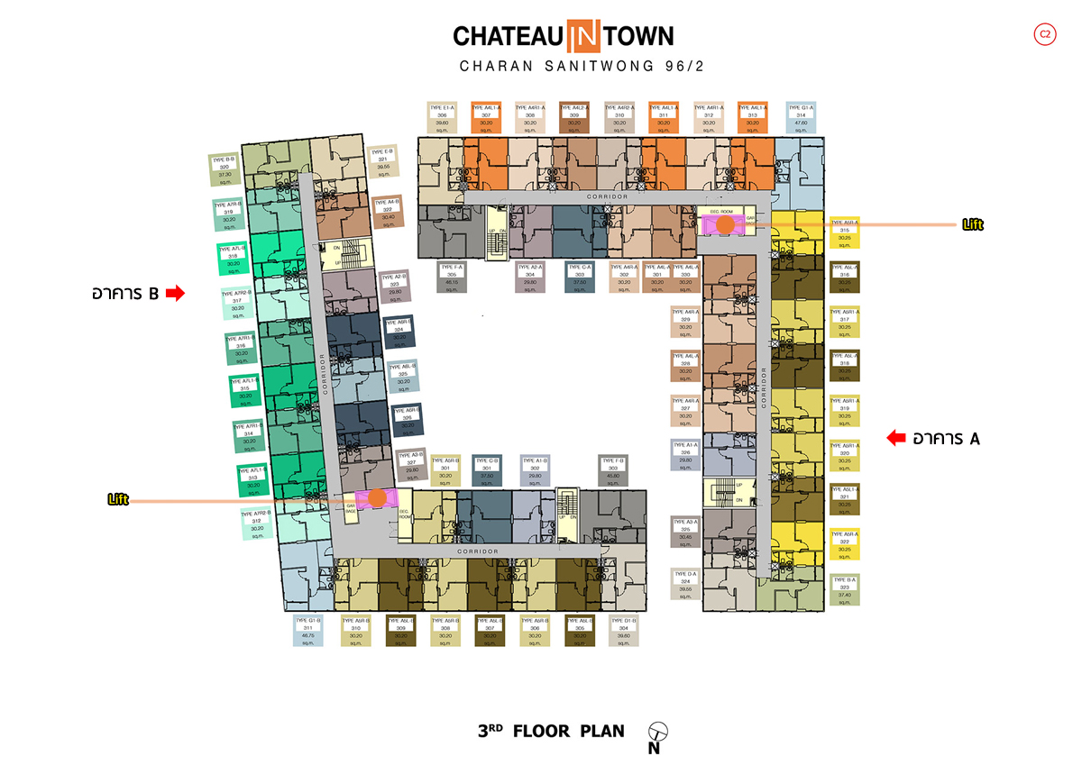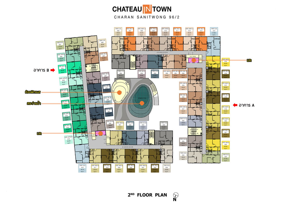 ชั้น 2 - อาคาร A : เป็นส่วนพักอาศัยทั้งหมด มีห้องพักอาศัย 28 ยูนิต ตั้งแต่ 1 ห้องนอน และแบบ 2 ห้องนอน