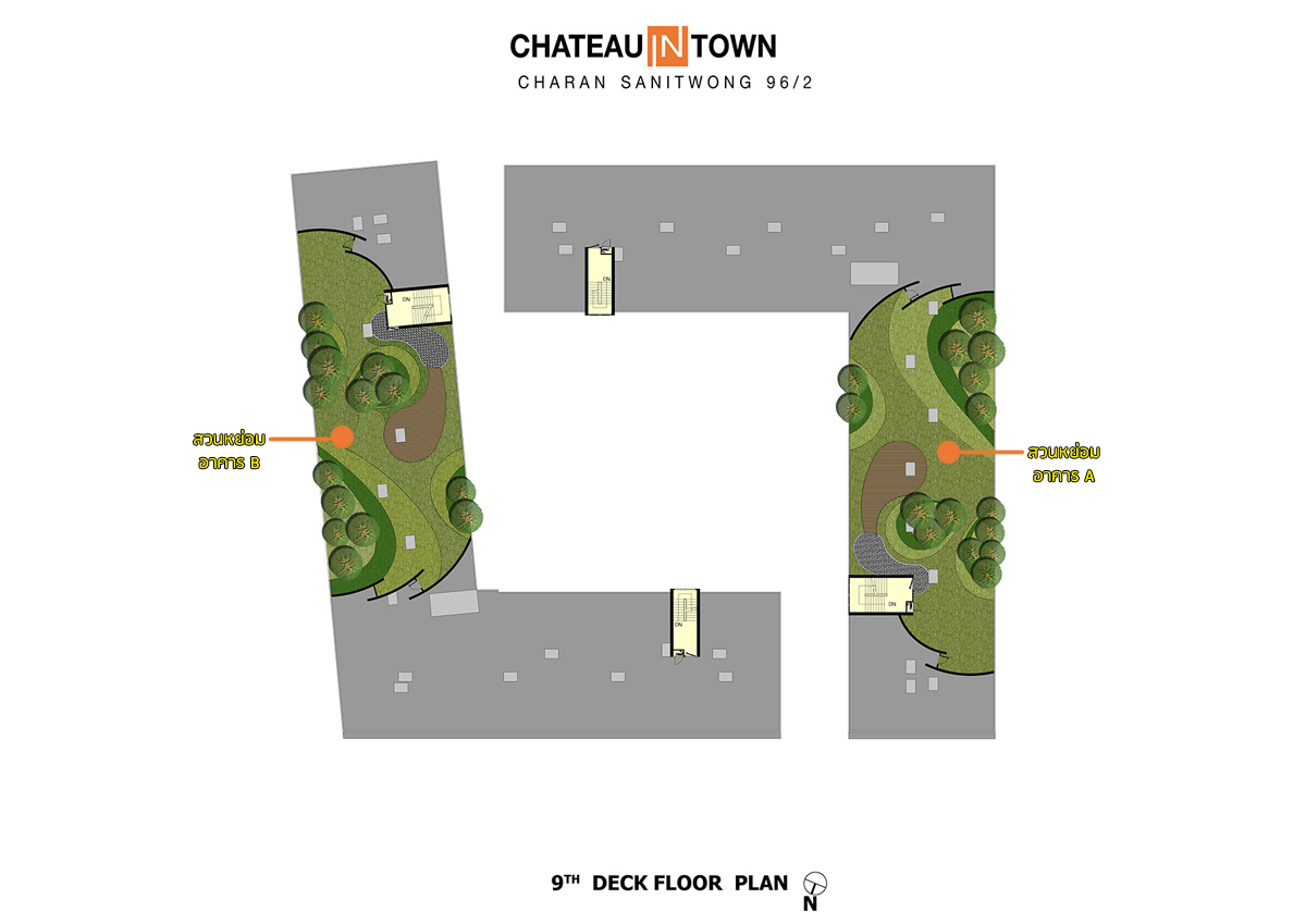 ชั้นดาดฟ้า อาคาร A และ อาคาร B : จัดเป็นพื้นที่ส่วนหย่อม
