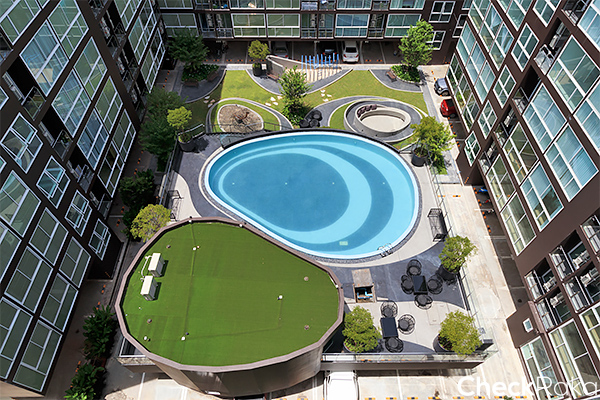สิ่งอำนวยความสะดวกแยกส่วนจากอาคารพักอาศัยอย่างเป็นสัดส่วน โดยจัดวางอาคารสันทนาการ (อาคารสระว่ายน้ำ และฟิตเนส) ไว้กลางแจ้งบริเวณชั้น 1 ออกแบบมาให้มีรูปทรงโค้งเว้า ตั้งอยู่ตรงกลางระหว่างอาคาร A กับอาคาร B โอบล้อมด้วยต้นไม้ และพื้นที่สีเขียวเนื้อที่ประมาณ 1,060 ตร.ม. สำหรับนั่งพักผ่อนให้ลูกบ้านได้ใช้ร่วมกัน ออกแบบพื้นที่บางส่วนทำเป็นลู่จ๊อกกิ้งไว้ให้ลูกบ้านใช้สำหรับออกกำลังกายภายในโครงการ ซึ่งการจัดวางพื้นที่ส่วนกลางไว้ใจกลางแบบนี้มีข้อดีคือ ลูกบ้านที่มาใช้บริการตรงจุดนี้จะค่อนข้างได้ความเป็นส่วนตัว และปลอดภัยจากสายตาของเพื่อนบ้านใกล้เคียง นอกจากนี้ยังมีสิ่งอำนวยที่อยู่บนชั้น 8 และอื่นๆ อีก อาทิ