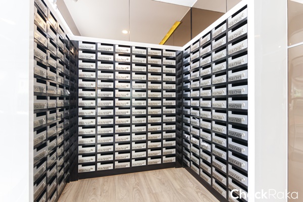 มีตู้จดหมายอยู่ใกล้ๆ กับโถงลิฟต์