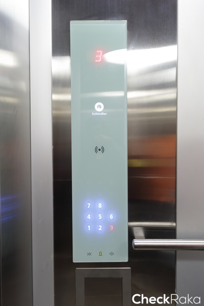 ภายในลิฟต์ หน้าจอแผงปุ่มกดเป็นแบบ Touch screen ของ Schindler