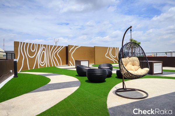 - สวนหย่อมพักผ่อนที่ชั้น 1, ชั้นดาดฟ้าอาคาร A อาคาร B และอาคารสระว่ายน้ำ