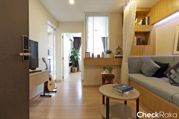 ห้องพักอาศัยของที่นี้ขนาดเริ่มต้นอยู่ที่ประมาณ 29 ตร.ม. ซึ่งเป็นขนาดที่ไม่เล็กจนเกินไปสามารถพักอาศัยอยู่ได้จริงแบบไม่อึดอัด ส่วนเฟอร์นิเจอร์ และของแถมก็จะขึ้นอยู่กับโปรโมชั่นในแต่ละช่วงเวลานั้นๆ แนะนำให้สอบถามจากทางโครงการอีกทีนะคะ โดยช่วงที่ทีมงานเข้าไปรีวิวนั้น เป็นช่วงที่โครงการจัดโปรโมชั่นให้เฟอร์นิเจอร์แบบ Fully Furnished ได้ครบทั้งเฟอร์นิเจอร์ Built - in และเฟอร์นิเจอร์ลอยตัว