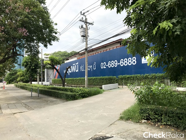 พื้นที่ภายในโครงการติดกับหลังวัดโพธิ์แมน และที่จอดรถของ The Up Rama 3 พอดี