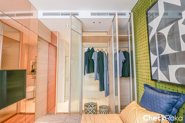 อีกฝั่งของห้องนอนจะเป็นตู้เสื้อผ้าและห้องน้ำค่ะ