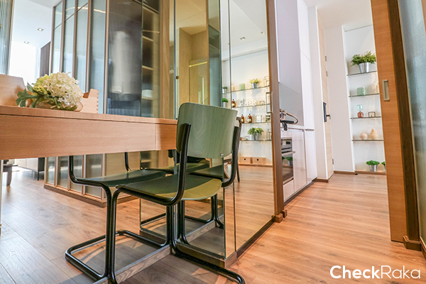 ติดกันก็จะเป็นโซนรับประทานอาหาร พื้นของห้องจะเป็นพื้นพรีเมี่ยมลามิเนตจากยุโรป