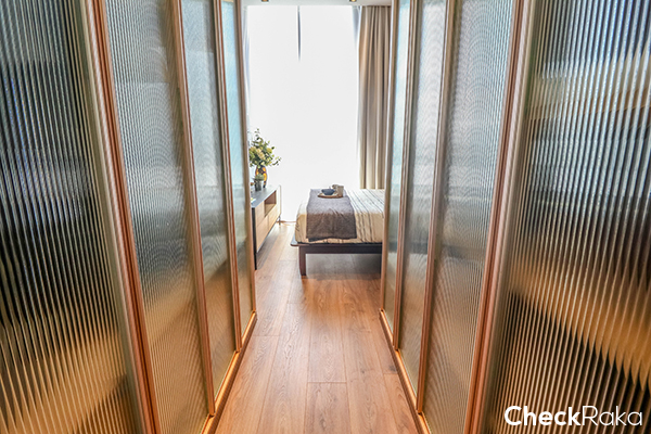 ในทุกๆ ยูนิต จะเน้นพื้นที่การใช้งานด้วยฟังก์ชัน Flow and Fluid และ Sliding Door ที่ทำให้สามารถปรับรูปแบบการใช้ชีวิตภายในห้องได้ตามความต้องการ ซึ่งประตูเป็นองค์ประกอบหนึ่งที่เชื่อมโยงแต่ละพื้นที่ใช้สอยแต่ละส่วนเข้าไว้ด้วยกัน หากอยากให้ห้องโล่งก็เลื่อนประตูบานเลื่อนภายในห้องเปิดออก ก็จะได้ความรู้สึกลื่นไหลไปในทุกๆ พื้นที่ใช้สอย หรือเมื่อเลื่อนประตูปิด พื้นที่ตรงนั้นก็จะเป็นพื้นที่ส่วนตัวของคุณทันที ข้อดีของโครงการที่ใช้ประตูภายในแบบบานเลื่อนก็คือ ไม่เกะกะสายตาเหมือนประตูบานเปิดแบบปกติ