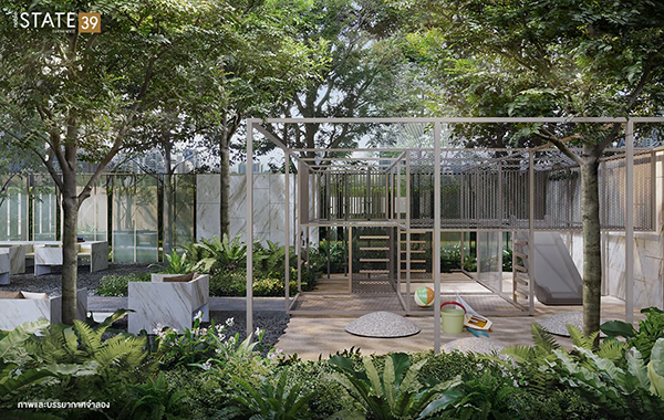 โนเบิล สเตท สุขุมวิท 39 (Noble State Sukhumvit 39) ออกแบบพื้นที่สวนส่วนกลางในแนวคิด "Creative Forrest" โดยกระจายตัวอยู่ที่ชั้น G, 9, 36 ในอาคาร Y และที่ชั้น 3 อาคาร X มีพื้นที่สีเขียวในโครงการฯ ประมาณ 1,285 ตร.ม. มีลิฟต์โดยสาร 3 ตัว และลิฟต์บริการ 1 ตัว พร้อมที่จอดรถใต้ดิน 2 ชั้น และที่ชั้น G จนถึงชั้น 8 รวมแล้วจอดได้ประมาณ 54% ไม่รวมจอดซ้อนคัน