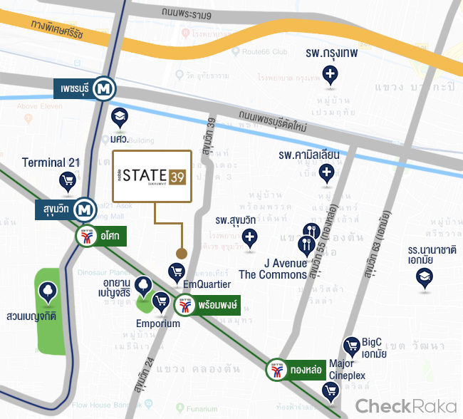 โครงการ โนเบิล สเตท สุขุมวิท 39 (Noble State Sukhumvit 39) ตั้งอยู่ที่ซอยสุขุมวิท 39 แขวงคลองตันเหนือ เขตวัฒนา กรุงเทพมหานคร 10110 ทำเลที่อัตราเช่าคอนโดอยู่ในระดับสูงที่สุดของกรุงเทพฯ! คือ อยู่ที่ 1,000 บาท/ตร.ม./เดือน และราคาขายคอนโดในย่านนี้นั้นพุ่งขึ้นทุกๆ ปี เพราะที่ดินในแถบนี้ยังคงเป็นที่ต้องการของนักลงทุนทั้งชาวไทย และชาวต่างชาติอย่างต่อเนื่อง บวกกับที่ดินที่จะนำมาพัฒนาเป็นโครงการนั้นเหลือน้อยแล้ว เมื่อนำมาทำโครงการจึงได้รับผลตอบแทนสูง