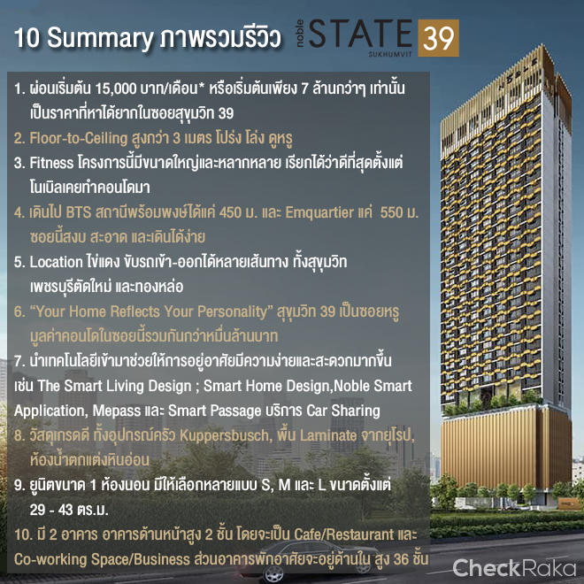 เยี่ยมชม - รีวิว โครงการ Noble State 39 คอนโดแบรนด์ใหม่ตัว Top จาก Noble แต่ราคา Affordable
