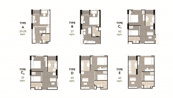 1 Bedroom ขนาด 26 - 28 ตร.ม. 1 Bedroom Plus ขนาด 39 - 40 ตร.ม. ราคาเริ่มต้น 1.69 ล้านบาท (ข้อมูล ณ 29 ต.ค. 61)