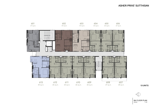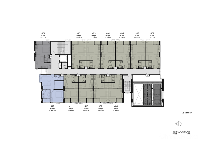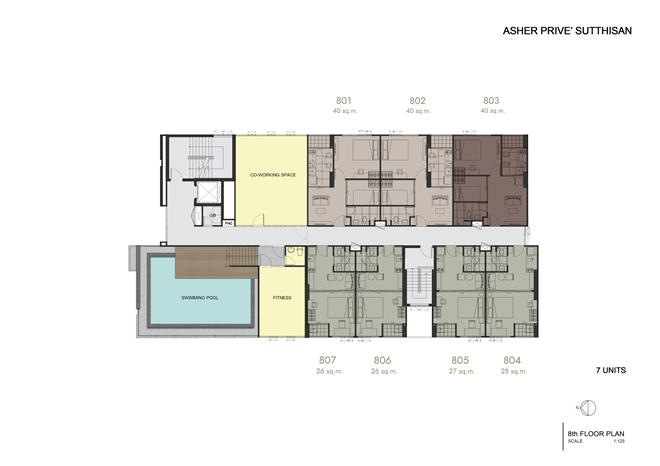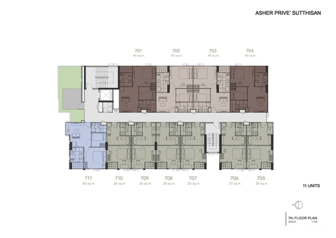 แปลนชั้น 2 มีห้องพักอาศัยรวม 12 ยูนิต แปลนชั้น 3 มีห้องพักอาศัยรวม 12 ยูนิต แปลนชั้น 4 มีห้องพักอาศัยรวม 12 ยูนิต แปลนชั้น 5 มีห้องพักอาศัยรวม 12 ยูนิต แปลนชั้น 6 มีห้องพักอาศัยรวม 13 ยูนิต แปลนชั้น 7 มีห้องพักอาศัยรวม 11 ยูนิต แปลนชั้น 8 มีห้องพักอาศัยรวม 7 ยูนิต ส่วนกลางและสิ่งอำนวยความสะดวก