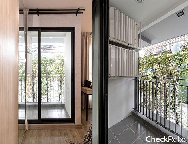 ติดกับตู้เสื้อผ้าเป็นพื้นที่ระเบียงค่ะ