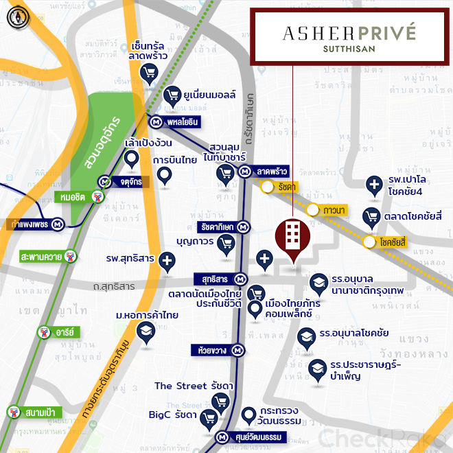ถึงแล้วค่ะ ที่ตั้งโครงการ แอชเชอร์ พรีเว่ สุทธิสาร (Asher Prive Sutthisan)