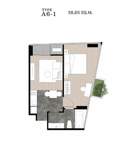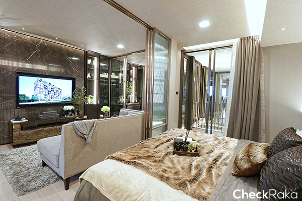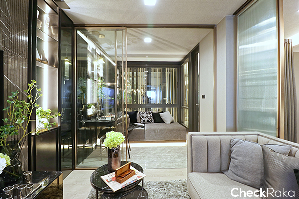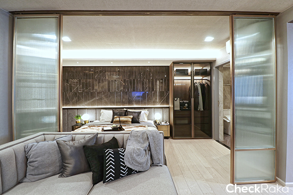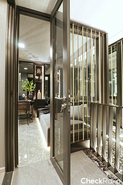 ในส่วนประตูห้องนอนนั้นจะเป็นตัวแบ่งพื้นที่ Living และ Bedroom
