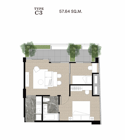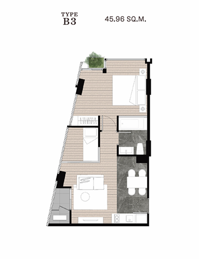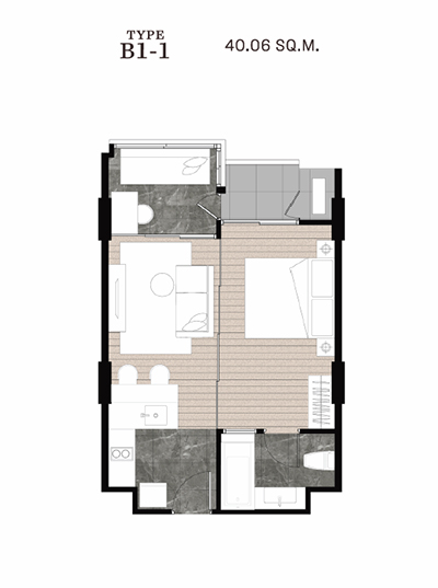 1 bedroom : 31 - 43 ตร.ม. 1 bedroom plus : 40 - 45 ตร.ม. 1 bedroom loft : 34 ตร.ม. 2 bedroom : 53 - 59 ตร.ม. 2 bedroom loft : 45 - 60 ตร.ม. โครงการ