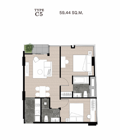 ห้องพักอาศัยโครงการนี้มีหลากหลายโดยหลักๆ จะมี 1 และ 2 ห้องนอน แต่จะแบ่งออกเป็นห้องธรรมดา ห้อง Plus และห้องแบบ Loft ที่ มีทั้งหมด 5 แบบ ดังนี้