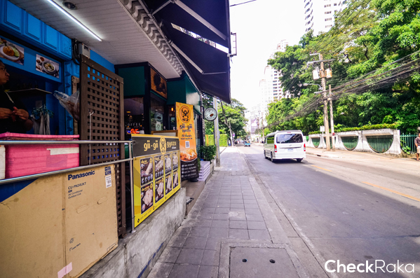 ร้านอาหารไทยมีภาษาญี่ปุ่นให้บริการด้วย เพราะคนญี่ปุ่นอยู่อาศัยในย่านนี้เยอะ