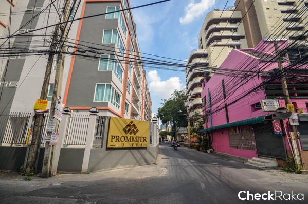 โครงการ Low Rise ความสูง 8 ชั้น ตัวอาคารสวยงาม ด้วยระแนงบังตาสีทองและต้นไม้ทุกยูนิต ด้านหน้าอาคารคือ ซอยสุขุมวิท 49/1 ด้านข้างคือ ซอยพร้อมมิตร