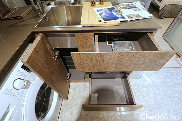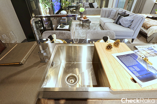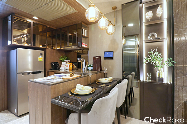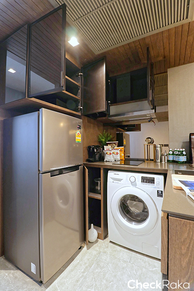 เคาท์เตอร์ครัวจะบิวท์อินให้ทั้งหมด ออกแบบให้เป็น L Shape เพื่อให้ใช้พื้นที่ได้เยอะขึ้น