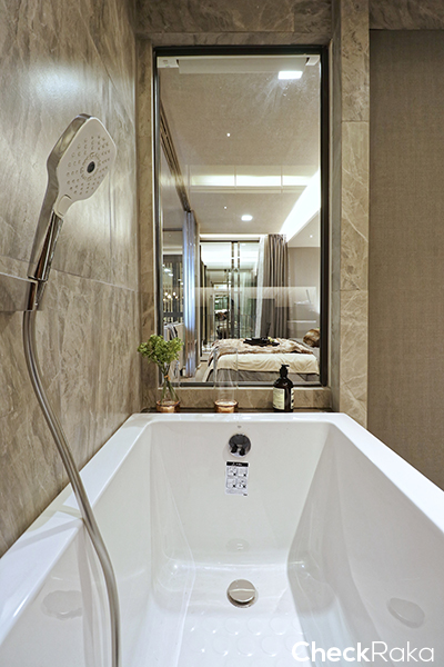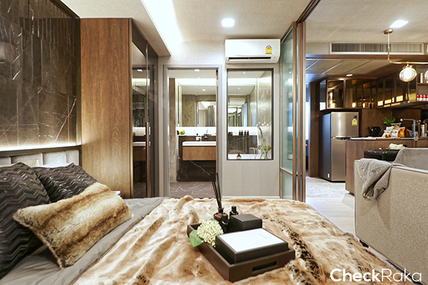 อีกฝั่งของเตียงจะเป็นพื้นที่แต่งตัวและห้องน้ำ