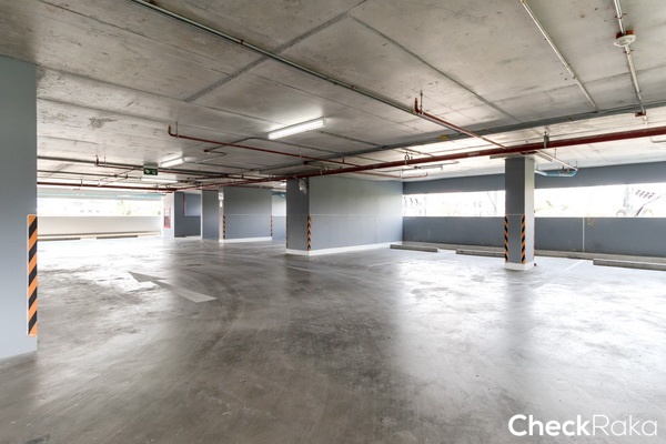 ที่จอดรถด้านบนค่อนข้างกว้าง บนเพดานติดตั้งไฟส่องสว่าง