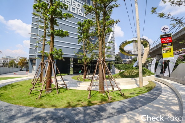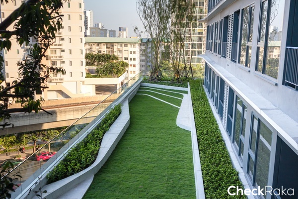 โซนด้านหน้าอาคารพักอาศัยจัดเป็นสวนหย่อมและพื้นที่สีเขียว