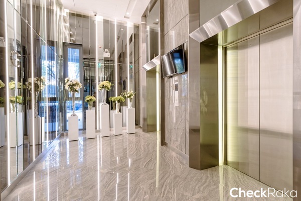 โถงลิฟต์กว้าง ยังคงตกแต่งด้วยกระจก และลายหินอ่อนโทนเดียวกับส่วนของล็อบบี้