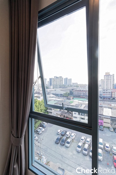 ได้กระจกแบบเข้ามุมบานใหญ่มากเกือบจะเป็น Full height เลยทีเดียว สามารถเทควิวเมืองได้อย่างเต็มที่