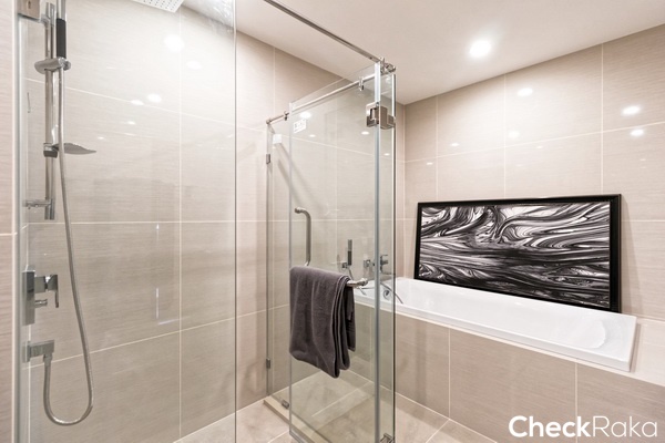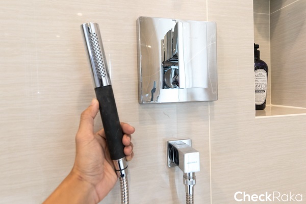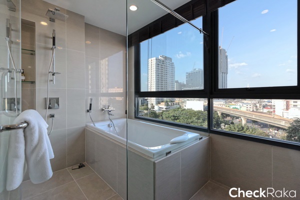 ส่วนอีกฝั่งเป็น Shower Box ได้อ่างอาบน้ำวางอยู่ติดกับหน้าต่าง โดย Rain Shower ของห้องนี้จะอยู่ใกล้กับอ่างอาบน้ำ