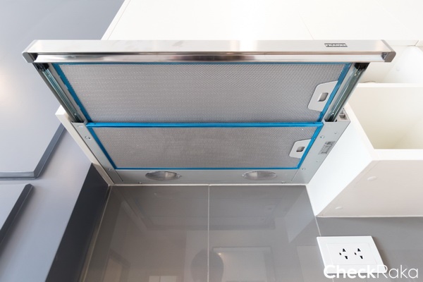 เข้ามาโซนแรกเป็นห้องครัวแบบเปิด ได้เตาไฟฟ้า 4 หัว เครื่องดูดควัน และอ่างล้างจานเหมือนห้องที่แล้ว