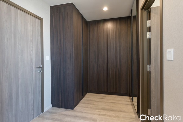 อีกฝั่งของห้องสามารถ Built-in เป็นตู้เสื้อผ้าสูงจรดฝ้า เพื่อเพิ่มพื้นที่ในการเก็บของได้