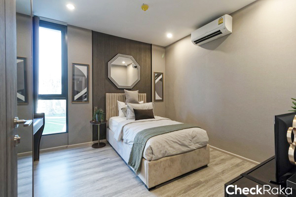 และนี่เป็นห้องนอนเล็กแต่ขนาดไม่เล็กเลย ตรงกลางห้องวางเป็นเตียง 3.5 ฟุต มาให้ดู แต่วางเป็นเตียงขนาด 6 ฟุต ก็ยังได้