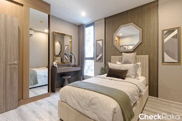 ห้องแบบ 1 Bedroom ขนาด 34.80 - 41.00 ตร.ม. ห้องแบบ 1 Bedroom Plus ขนาด 52.50 ตร.ม. ห้องแบบ 2 Bedroom ขนาด 80.50 - 86.00 ตร.ม. ห้องพักอาศัยออกแบบมาด้วยคอนเซ็ปต์ Smart Design ห้องขนาดใหญ่รองรับทุกรูปแบบของการพักอาศัย ไม่ว่าจะอยู่คนเดียวลำพัง หรือจะอยู่กันแบบครอบครัวใหญ่ที่นี่มีห้องให้เลือกครบ กับห้องหน้ากว้างสูงสุดถึง 10 เมตร โดยห้องขนาดเริ่มต้นที่นี้คือ 34.80 ตร.ม. เป็นขนาดที่เหมาะกับการอยู่อาศัยได้จริง ไม่เล็กหรือแคบจนเกินไป สำหรับห้องแบบ 2 ห้องนอนจะมีความพิเศษตรงที่ได้ระเบียง 2 ชั้นแบบ Semi-Outdoor ข้อดีคือ ช่วยป้องกันเสียง และความร้อนจากภายนอกอาคารได้ดี และยังสามารถใช้พื้นที่ตรงระเบียงได้อย่างเต็มประสิทธิภาพ