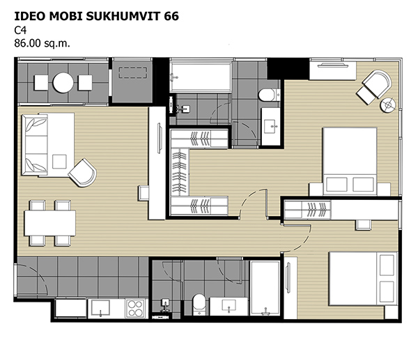 ห้องตัวอย่างแบบ 2 Bedroom ขนาด 86.00 ตร.ม.