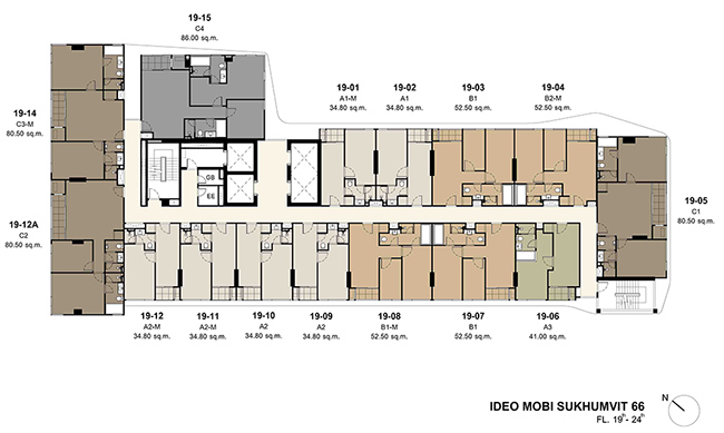 Floor Plan ชั้น 19-24 : ห้องชุดพักอาศัย จำนวน 14 ยูนิต