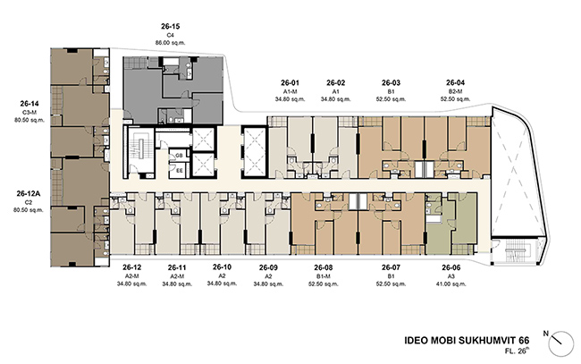 Floor Plan ชั้น 26 : ห้องชุดพักอาศัย จำนวน 14 ยูนิต