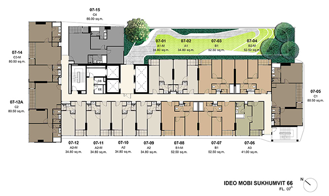 Floor Plan ชั้น 7 : ห้องชุดพักอาศัย จำนวน 15 ยูนิต, สวน